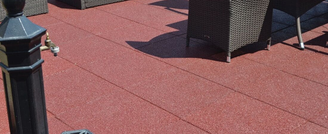 It provides slip resistance, shock absorption, durability in all weather conditions, and noise reduction.